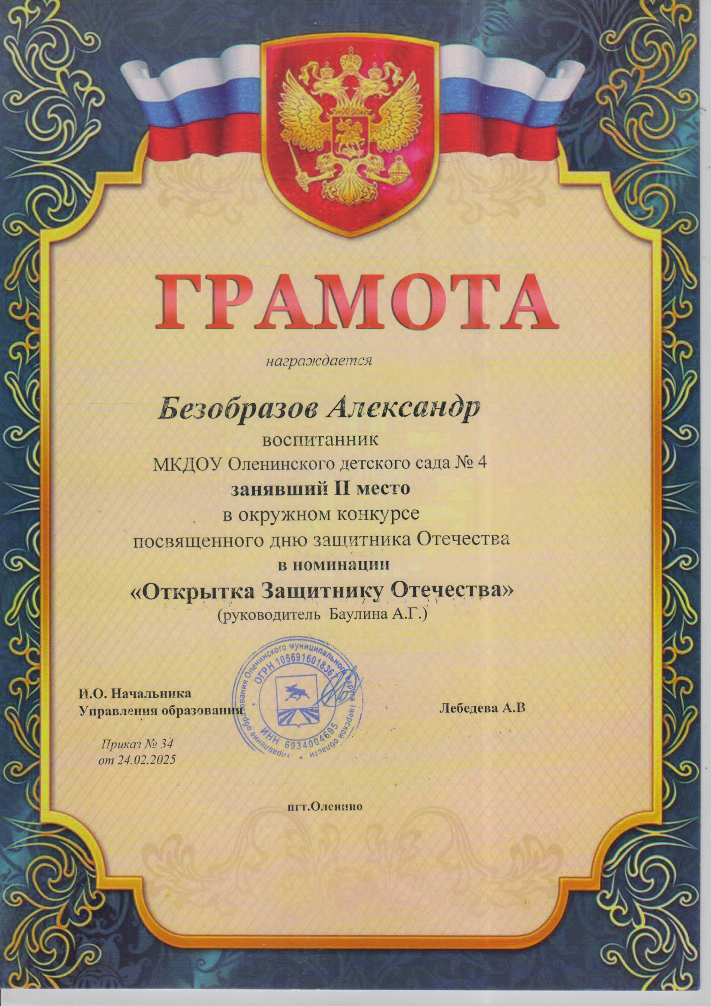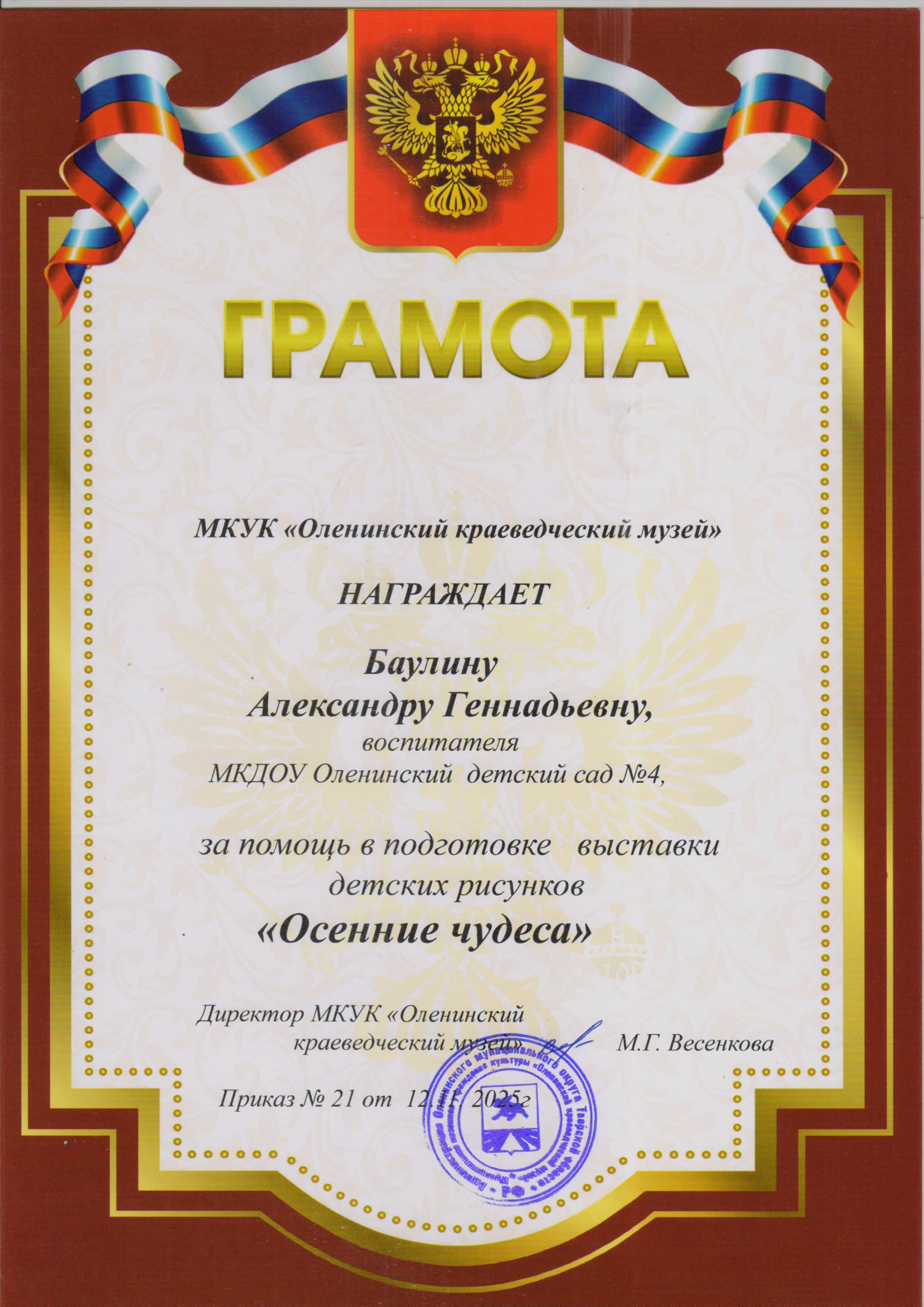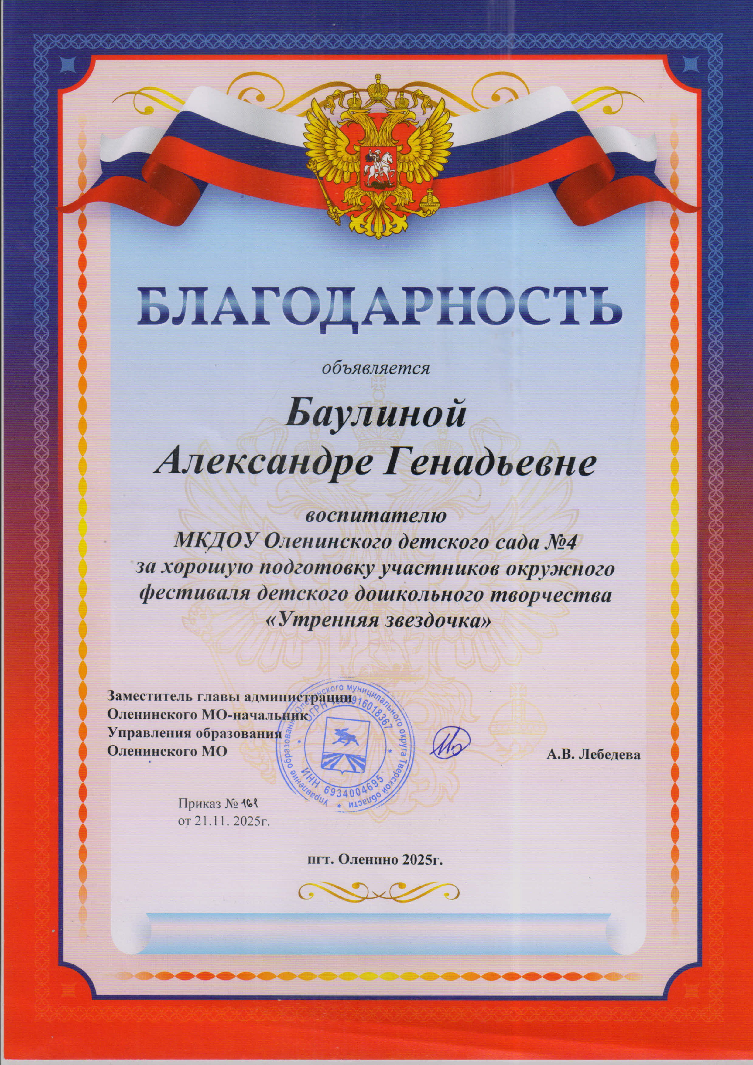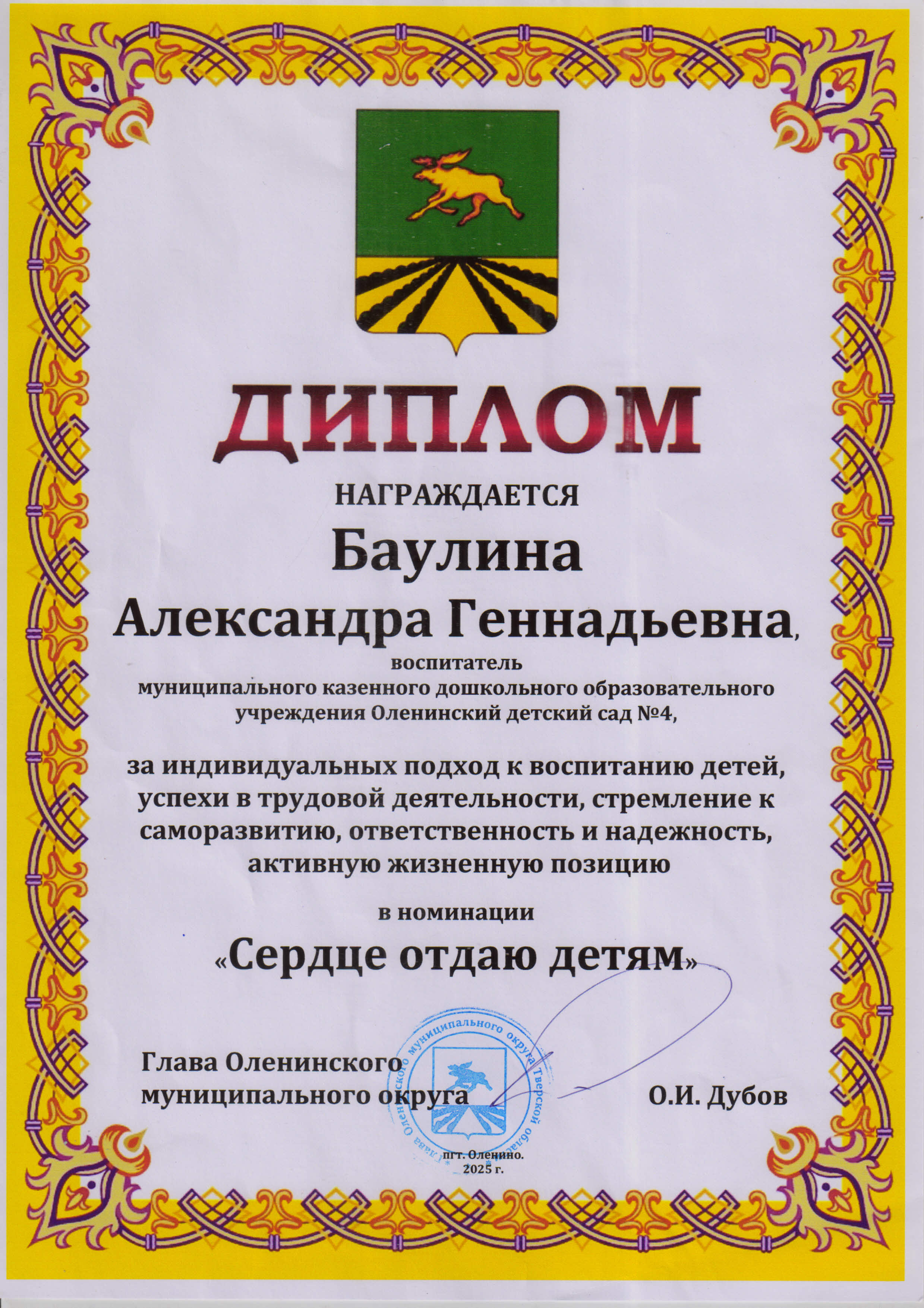 Баулина Александра Геннадьевна, воспитатель
