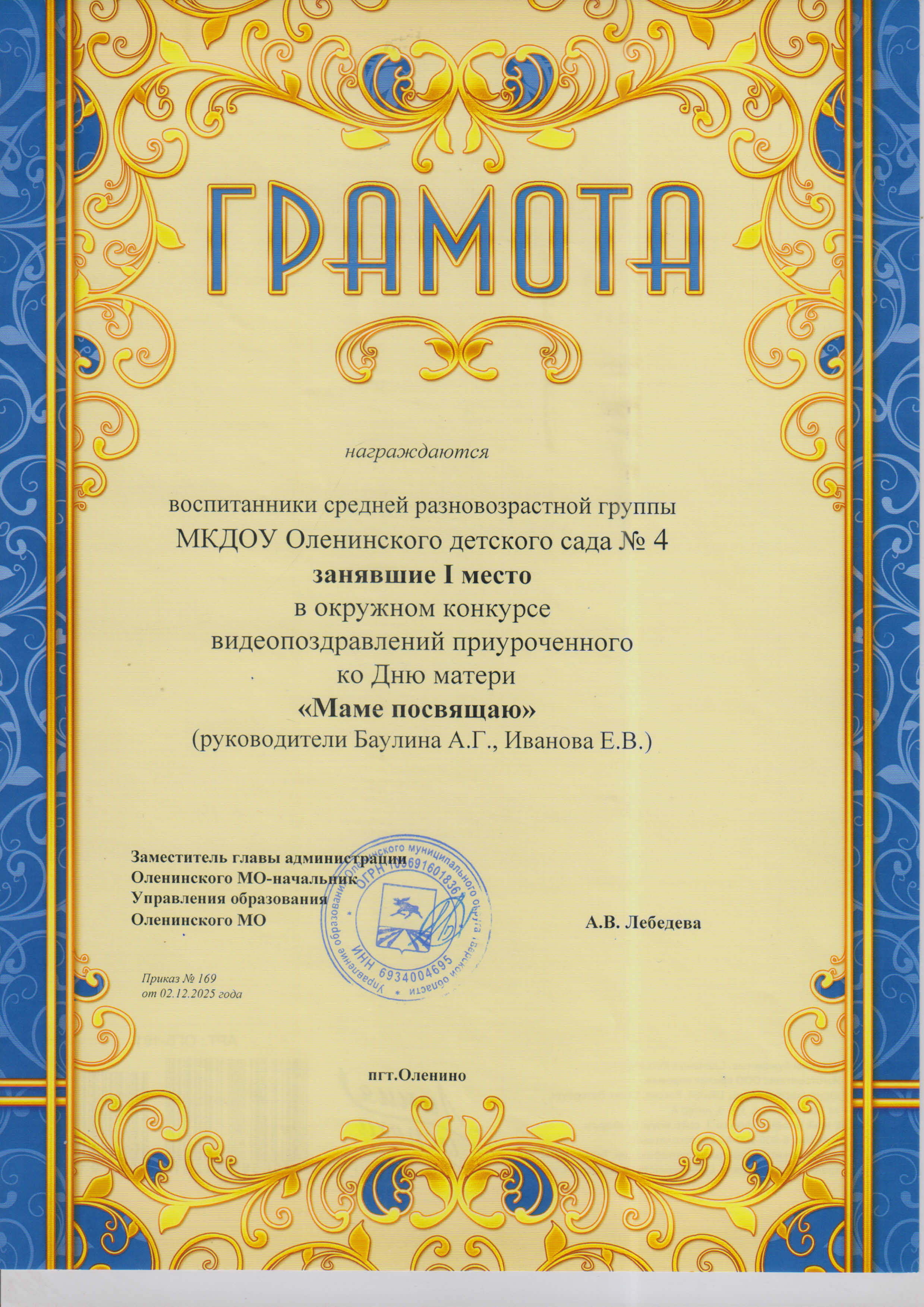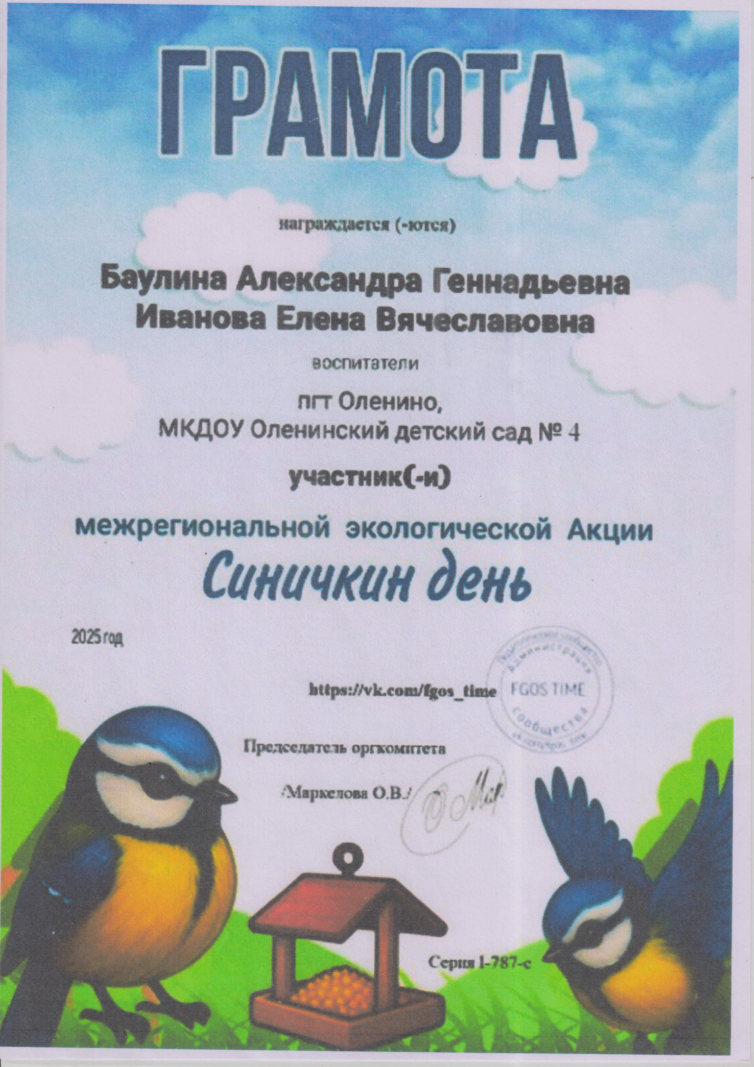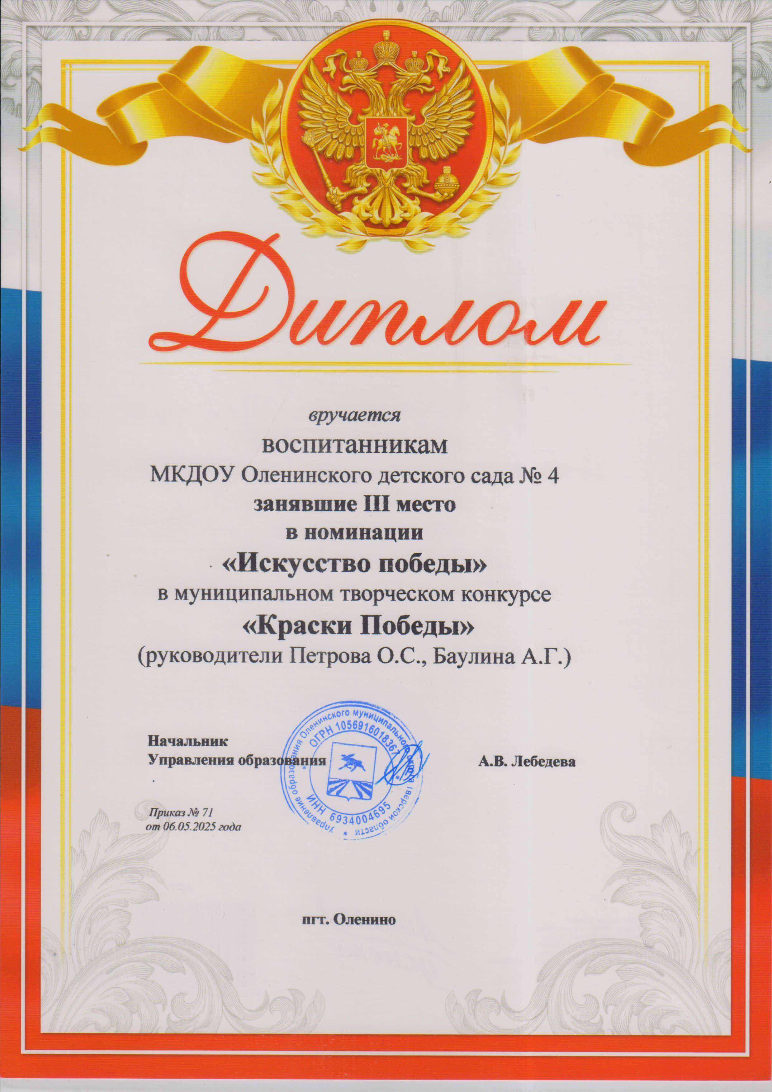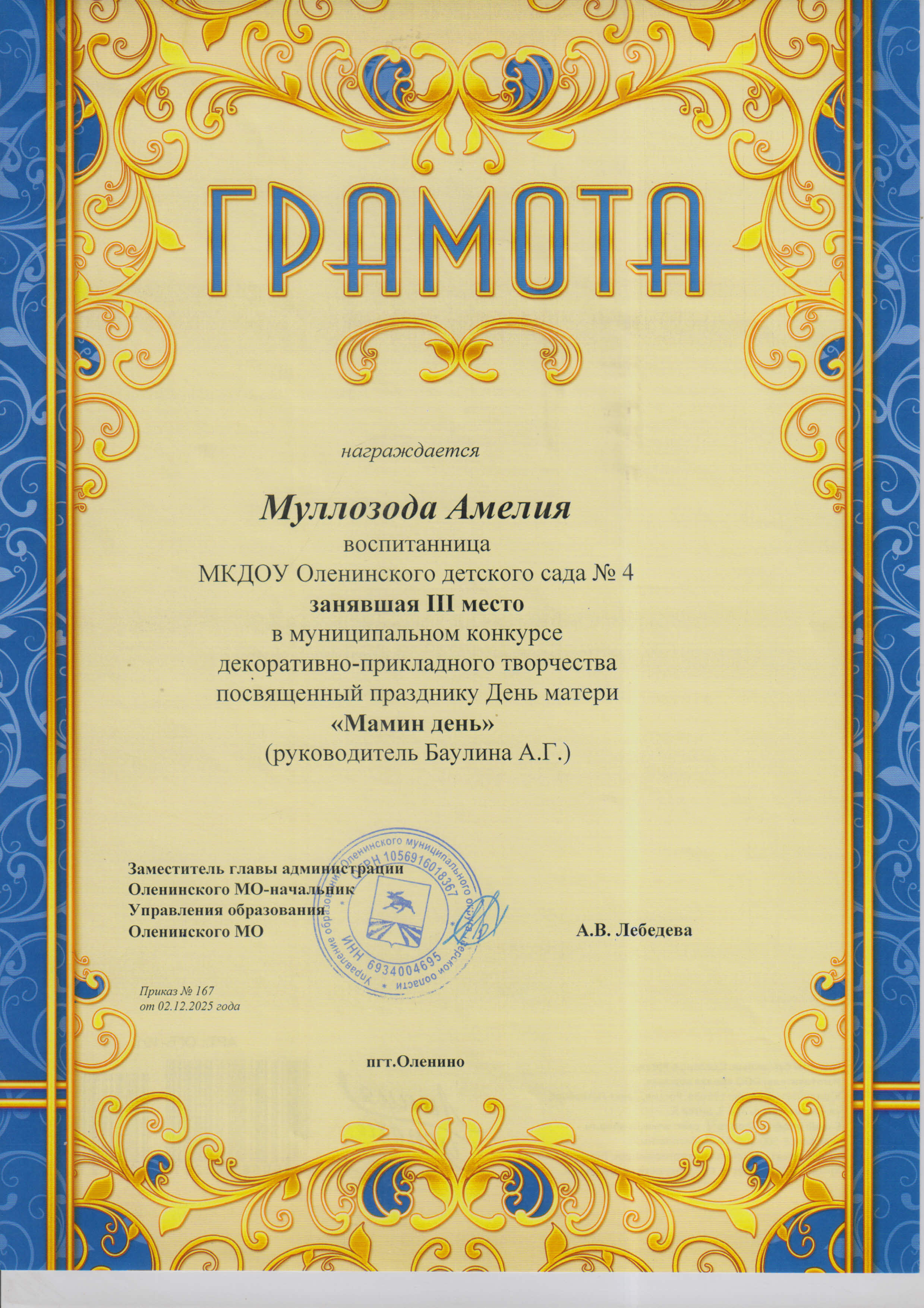 Баулина Александра Геннадьевна, воспитатель