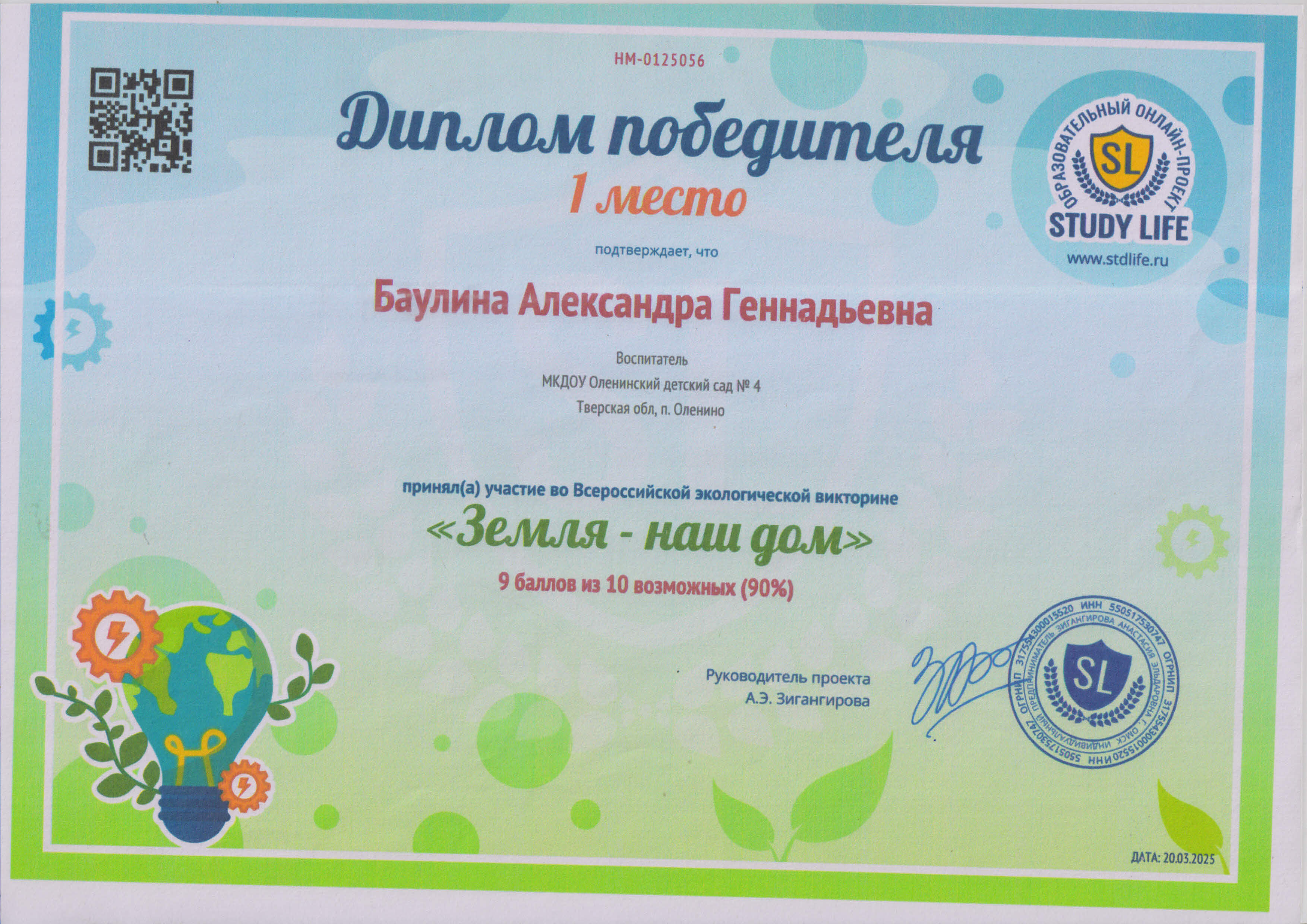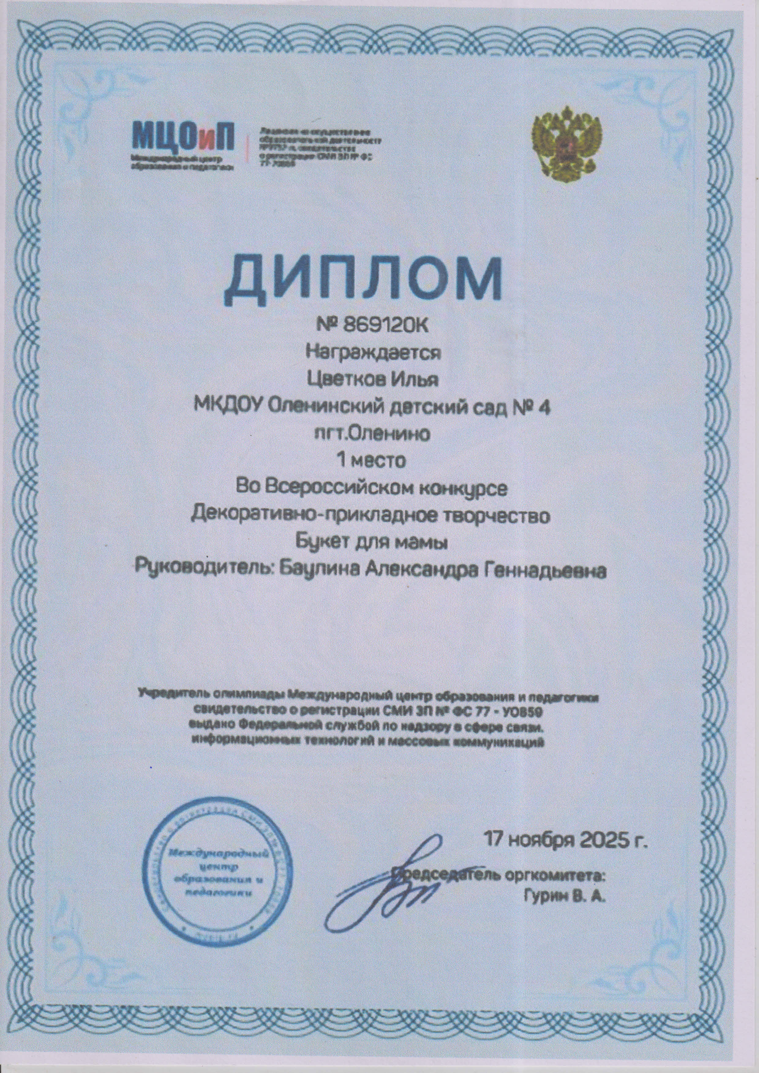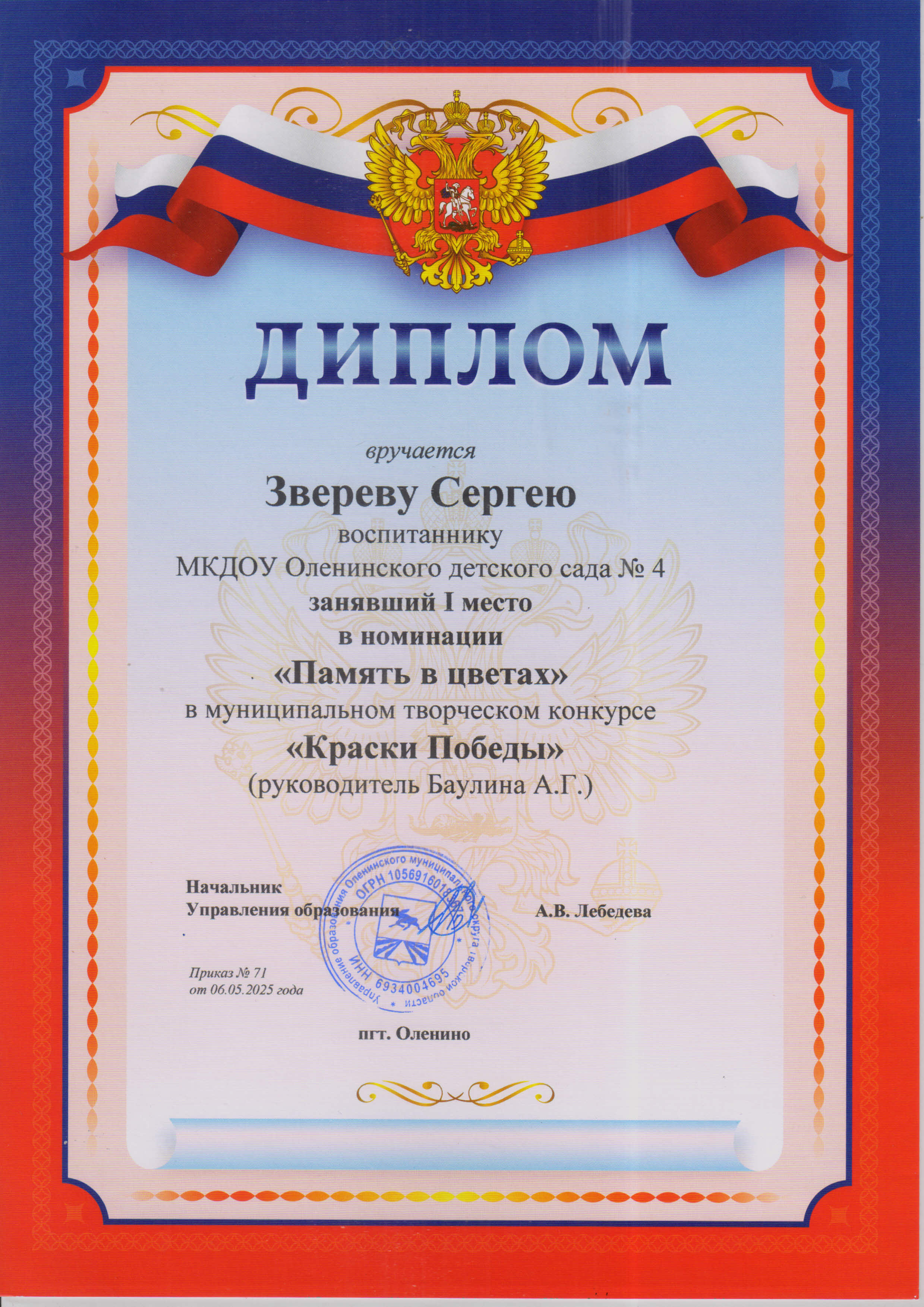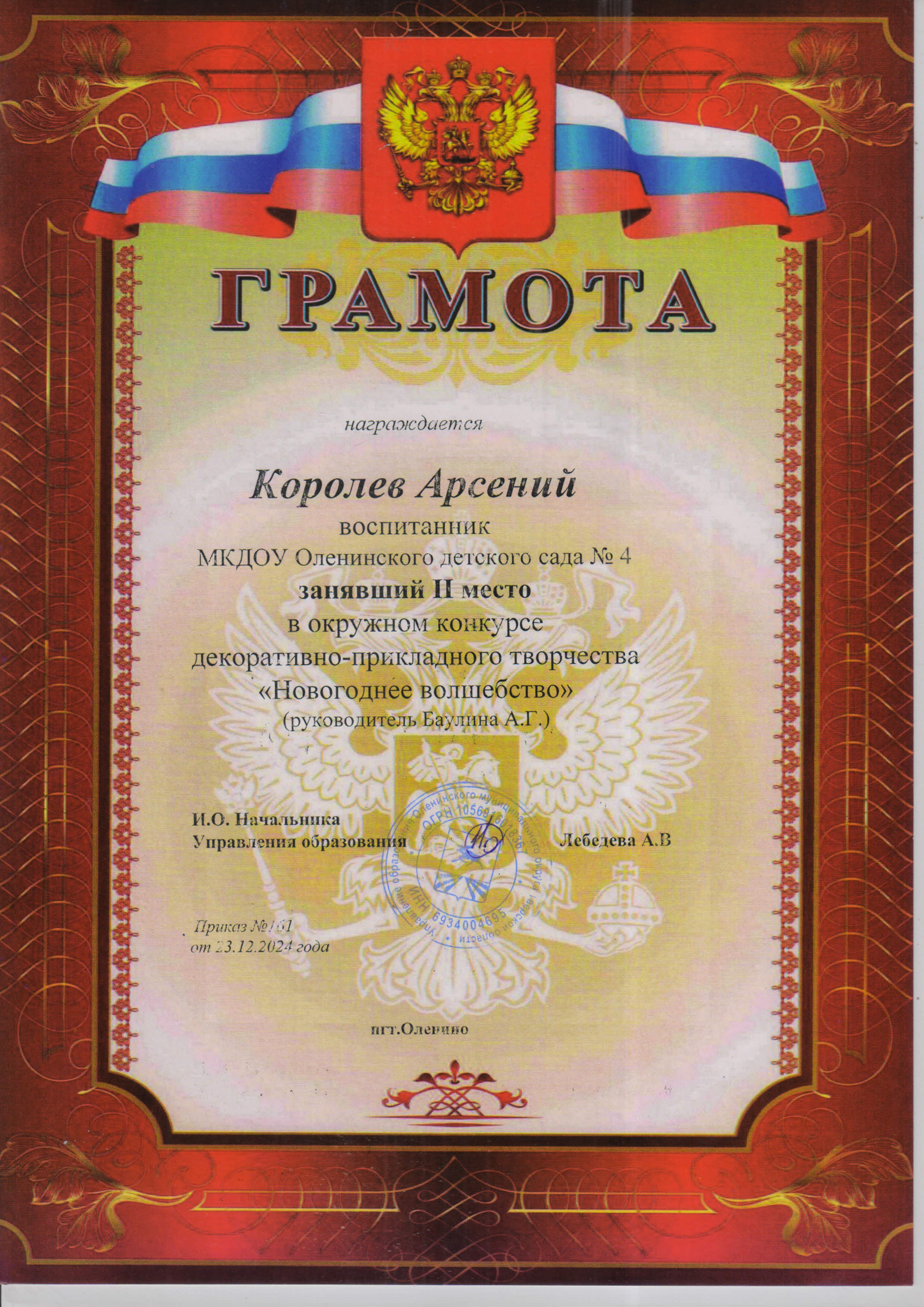 Баулина Александра Геннадьевна, воспитатель